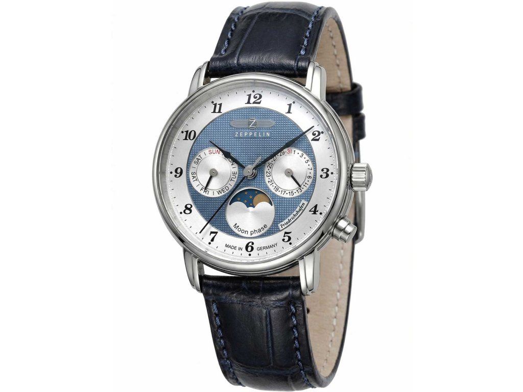 Pánske hodinky Zeppelin 85373 sú jedinečným spoločníkom na každú príležitosť. Hodinky z modelového radu Friedrichshafen Moon Phase 35mm 5ATM sú pre vás ideálnou voľbou, ak hľadáte hodinky s elegantným a zároveň moderným vzhľadom.Srdcom týchto hodiniek je Quartz (batériový) strojček, ktorý, ako je u hodiniek Zeppelin zvykom, zaručuje presné meranie času.