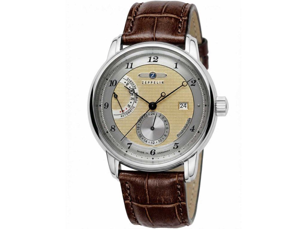 Pánske hodinky Zeppelin 85905 sú jedinečným spoločníkom na každú príležitosť. Hodinky z modelového radu Friedrichshafen 43mm 5ATM sú pre vás ideálnou voľbou, ak hľadáte hodinky s elegantným a zároveň moderným vzhľadom.Srdcom týchto hodiniek je Automatický strojček, ktorý, ako je u hodiniek Zeppelin zvykom, zaručuje presné meranie času.